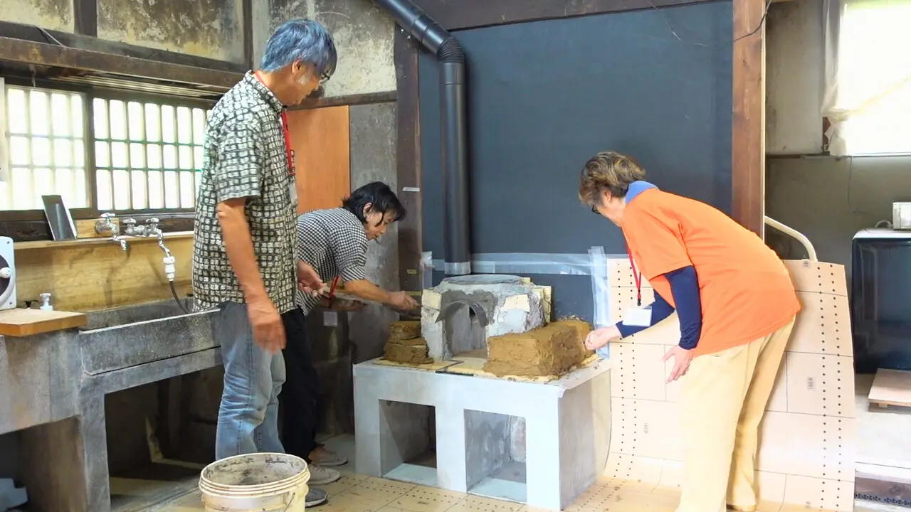 3グループに分かれて「おくどさんワークショップ」を実施しました。