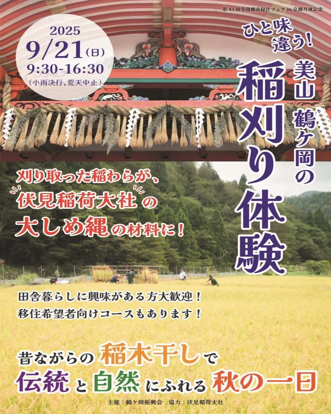 【京都/南丹市】ひと味違う!美山鶴ヶ岡の稲刈り体験