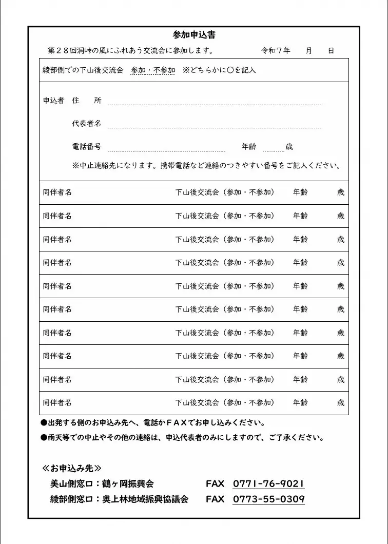 綾部側窓口=奥上林地域振興協議会 TEL 0773-55-0001 FAX 0773-55-0309