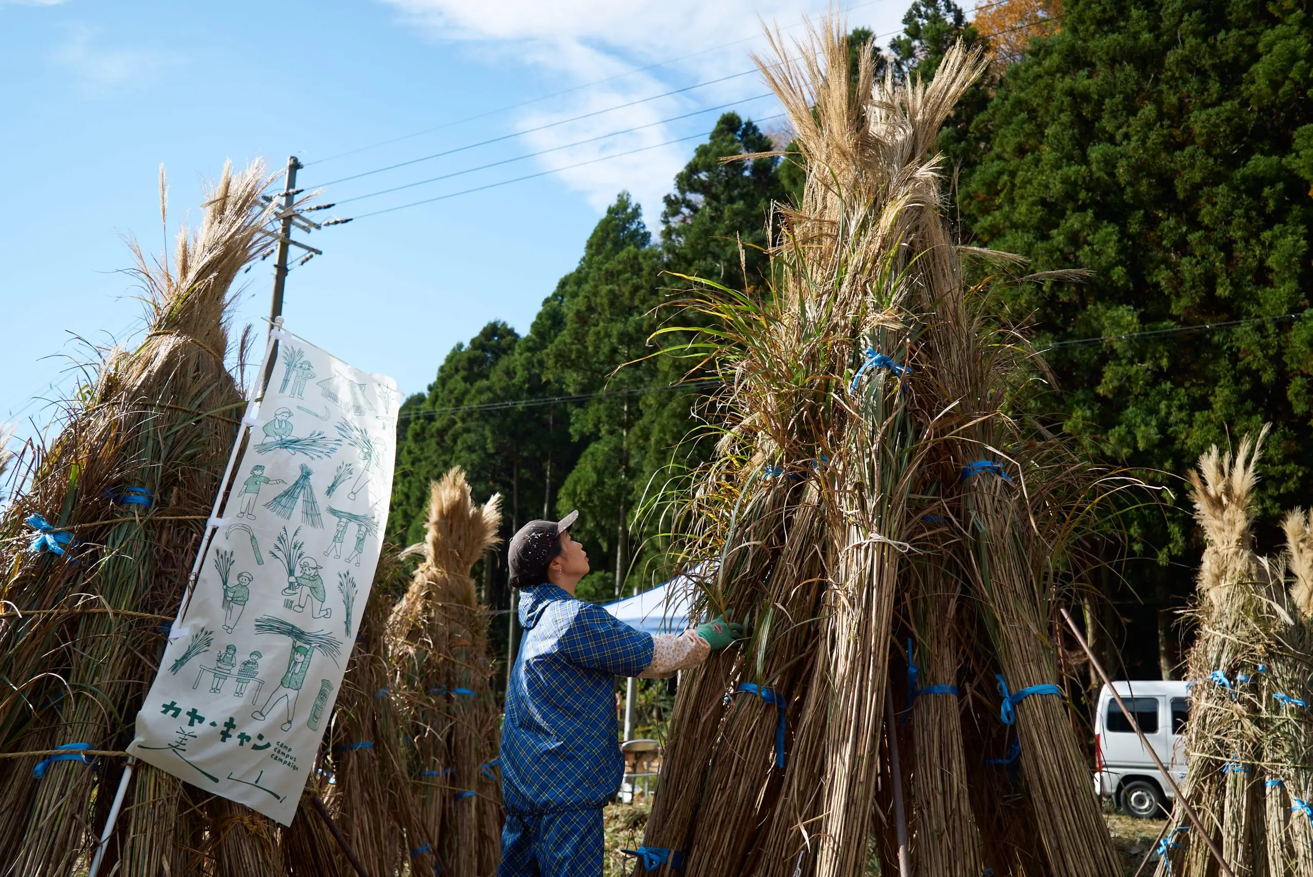 当日は、川風や土の匂い、刈り取った茅の感触に身をゆだねながら、集落の人々と肩を並べて作業します。
