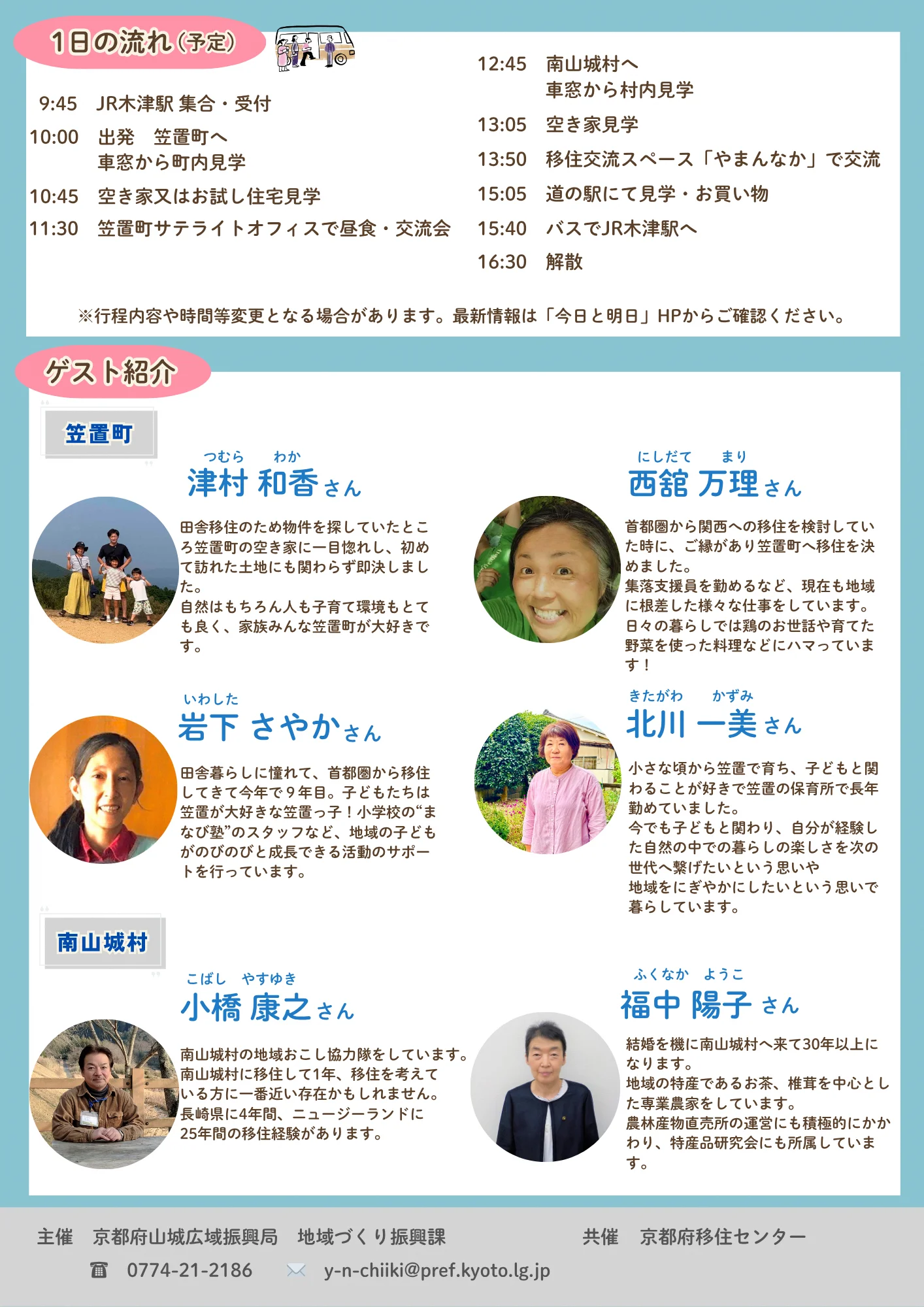 その中でも今回は、川や山、美しい茶畑、そんな自然広がる「笠置町・南山城村」をバスで巡る、移住ツアーです。