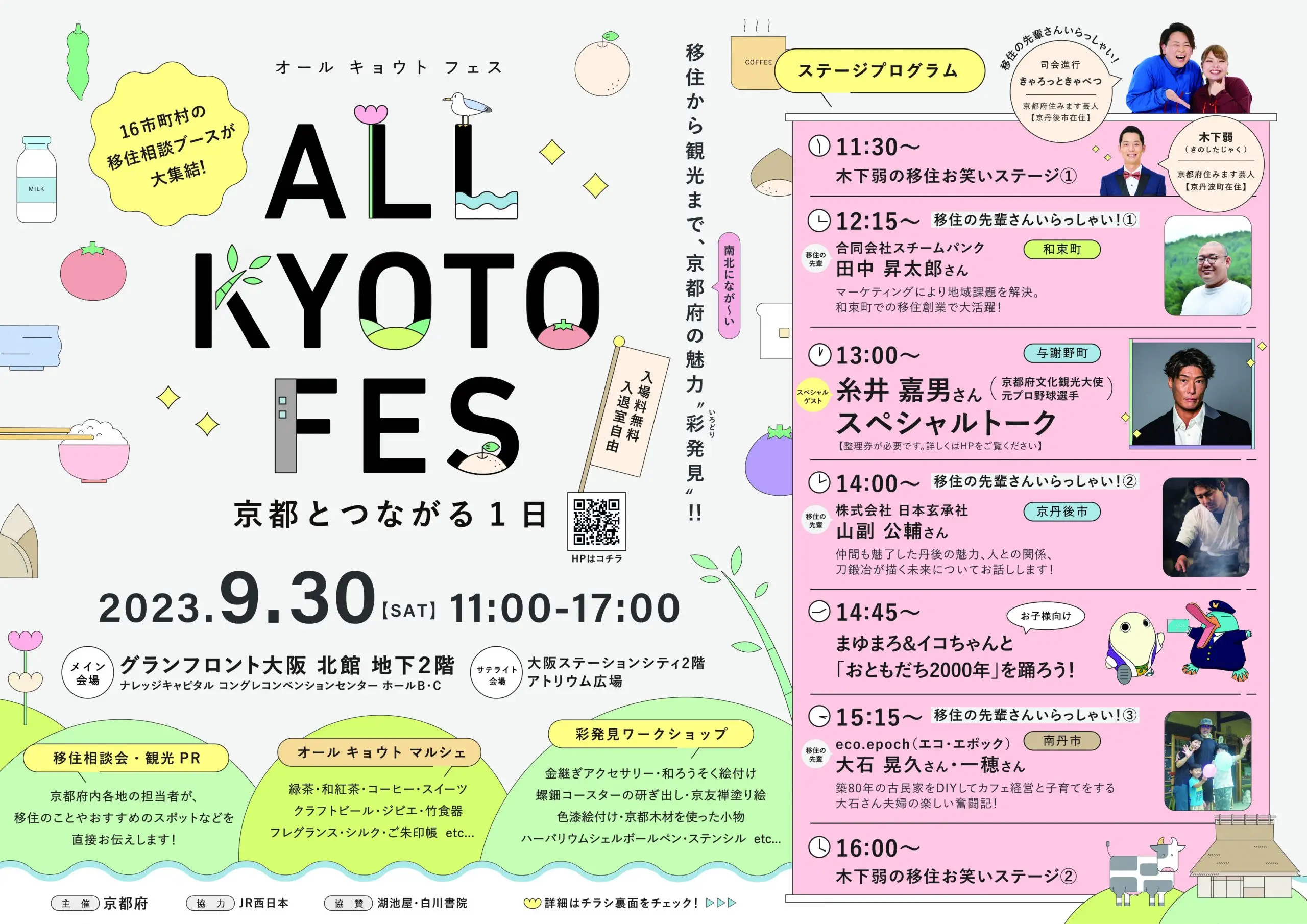 京都移住コンシェルジュや16市町村による移住相談会のほか、移住から観光まで、南北になが~い京都府の魅力を”彩(=いろどり)発見”できるイベントをグランフロント大阪で開催します!