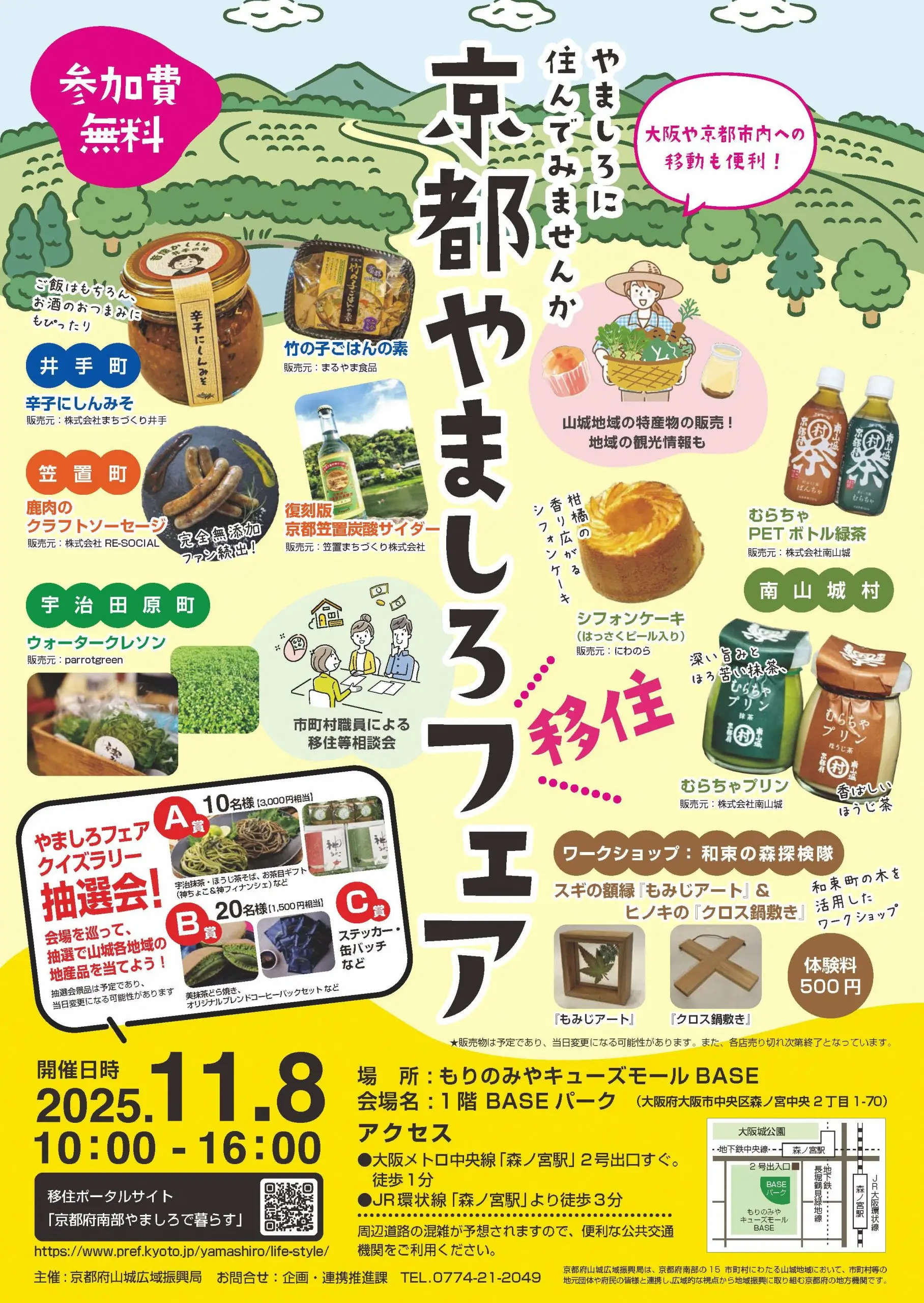 各市町村の特産品やワークショップを通じて、京都南部やましろの魅力を体感しよう!
