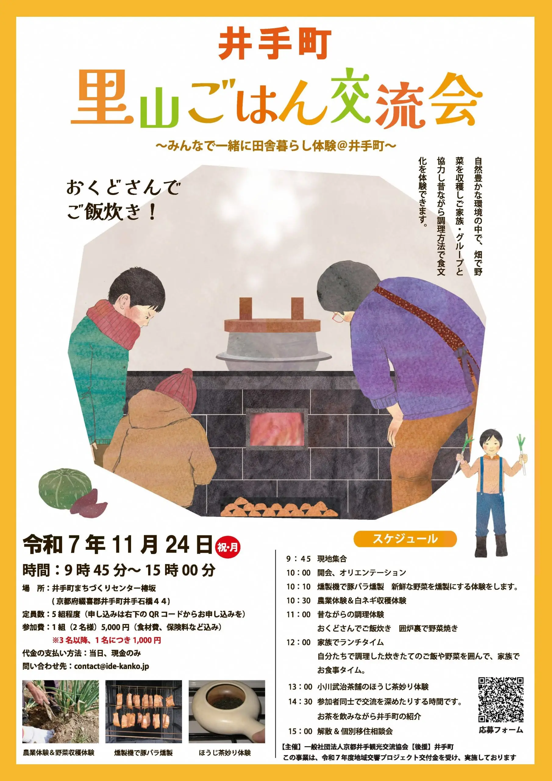 「見て・触れて・味わって」里山の暮らしの魅力を深く感じられる「里山ごはん交流会」を京都府井手町で開催します。